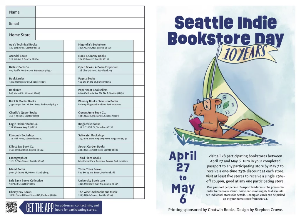 The central graphic and print materials for Seattle Independent Bookstore Day.